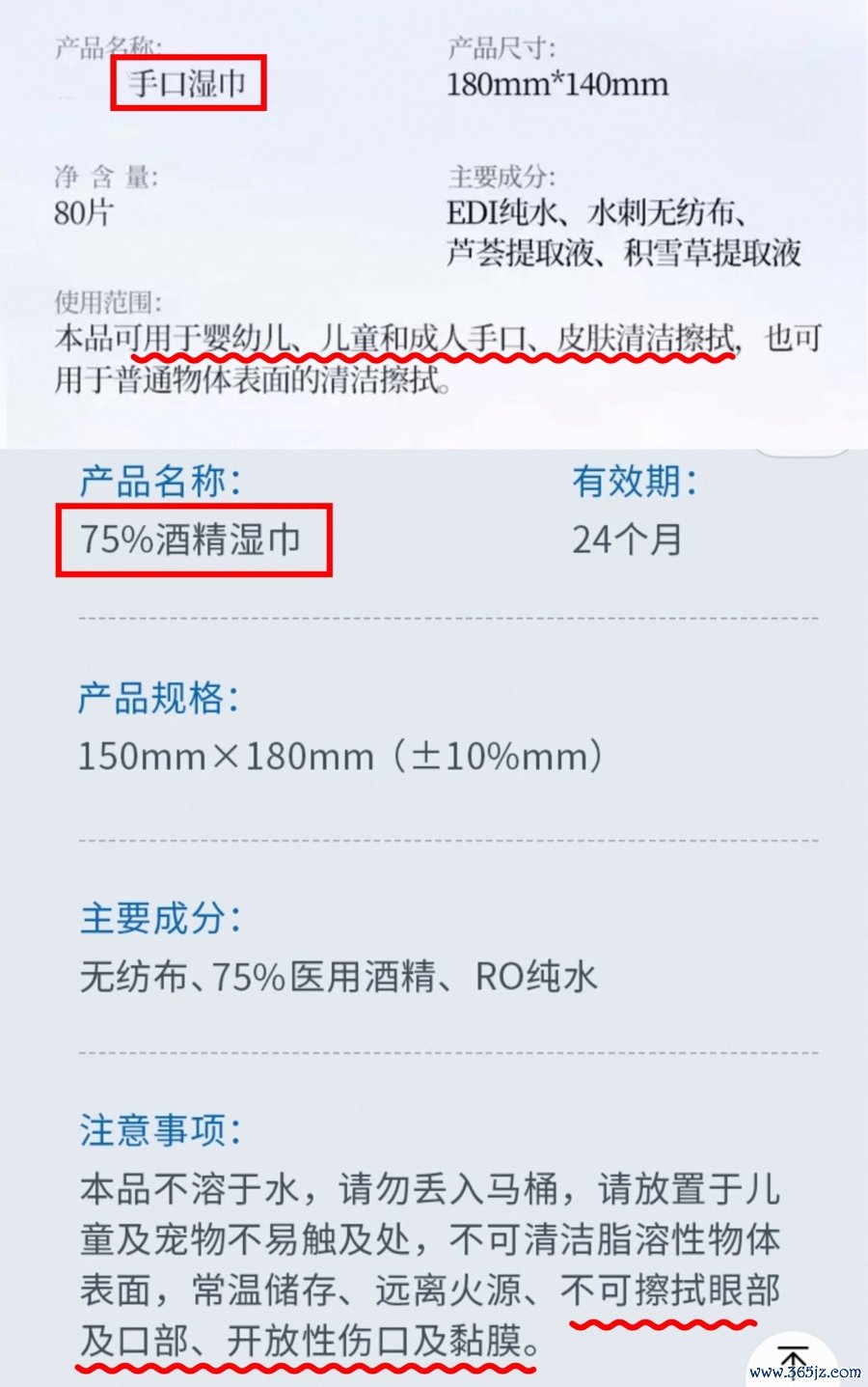 同样是湿巾,有的不能消毒,有的可以;有的能擦嘴,有的不能擦(图源:部分产品介绍)